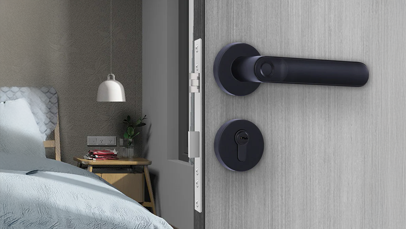 La cerradura digital YMC410 es compatible con puertas de madera o metálicas. Requiere perforaciones para manijas y cilindro.